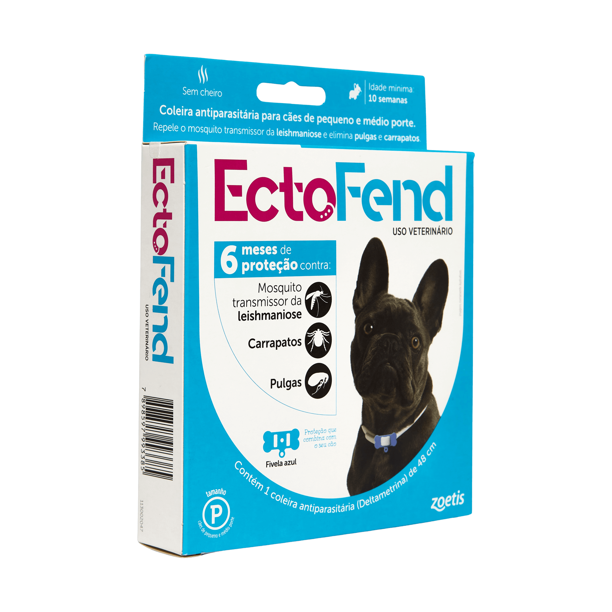 EctoFend® é uma coleira antiparasitária de uso veterinário, com ação repelente por 6 meses contra o mosquito-palha (Lutzomyia longipalpis), vetor da leishmaniose visceral canina. Também possui ação ectoparasiticida, oferecendo controle eficaz de pulgas (Ctenocephalides felis) por 6 meses e carrapatos (Rhipicephalus sanguineus) por até 8 meses, sendo considerada carrapaticida por 5 meses e auxiliar no controle de carrapatos por mais 3 meses.
